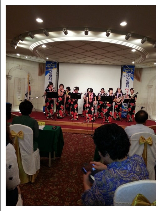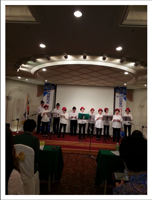 ▲ 9명의 발표자 심사시간 동안 자원봉사 동아리의 하모니카 연주와 우크렐라 연주 공연으로